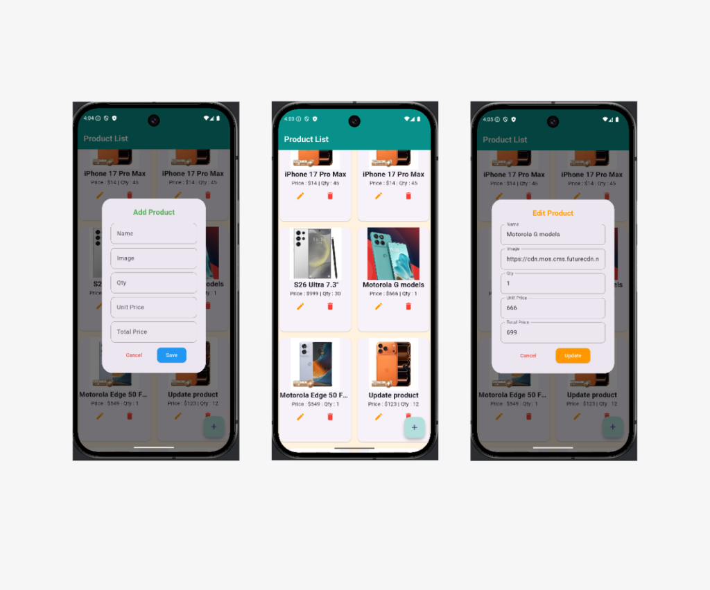 This E-commerce Admin Panel is designed to streamline inventory management through a clean, grid-based interface. It provides full control to Add, Update, and Delete products, allowing admins to manage prices, stock quantities, and images via intuitive popup forms. This module ensures a highly efficient workflow for keeping the product catalog accurate and up-to-date in real-time.